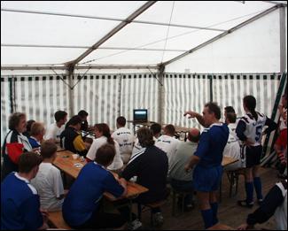 | Revanche beim Stiefeltrinken? Kursdorf (KNN). Kann die bayrische Bierfraktion ihre Schmach vom letzten Jahr wettmachen? Nachdem die Kursdorfer am letzten inoffiziellen Festtag klar nach Punkten bzw. Stiefeln gewann, ist man hier gespannt ob sich die Bajuwaren dieses mal besser vorbereitet haben. Höhepunkt Übertragung des Achtelfinalspiels der Fußball WM Spanien gegen Irland. |